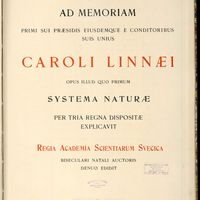 Ad memoriam primi sui praesidis eiusdemque e conditoribus suis unius Caroli Linnaei opus illud quo primum Systema naturae per tria regna dispositae explicavit