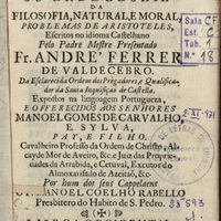 O porque de todas as couzas, ou endelechia da Filosofia, natural, e moral, problemas de Aristoteles escritos no idioma Castelhano pelo Padre Mestre Presentado Fr. André Ferrer de Valdecebro da Esclarecida Ordem dos Pregadores, e Qualificador da Santa Inq